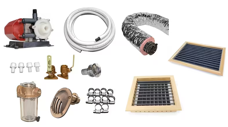 A/C Deluxe Installation Kit (Pump, Plastic Grills, Duct and Hardware) for Dometic ECD10, DTU10, and DTU12 Marine A/C Units.