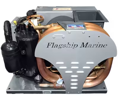 Flagship FM16H – 16,000 BTU - 115V Self-Contained, Liquid-Cooled Marine AC Unit. Environmentally Friendly R410a refrigerant, rugged and dependable, NO PC Board. Easy to install and maintain. The FM16H is built in the USA and delivers dependable cooling and heating year after year. Includes 4-wire battery-operated thermostat. Choose top or side discharge. 5-Year Warranty Parts, 1-Year Labor*