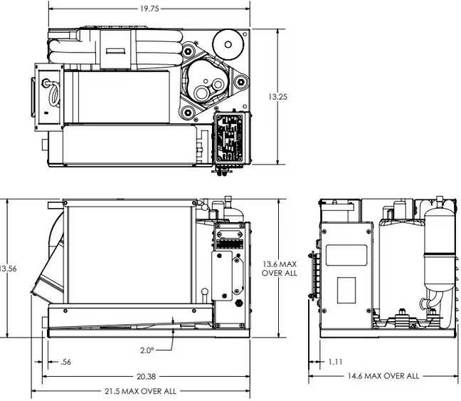 16,000 BTU Self-Contained, Liquid-Cooled Marine AC Unit using Environmentally Friendly R410a refrigerant, rugged and dependable, NO PC Board. Easy to install and maintain. The FM16H is built in the USA and delivers dependable cooling and heating year after year. Includes 4-wire battery-operated thermostat. Choose top or side discharge.