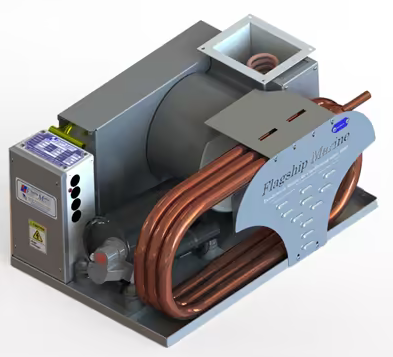 Flagship FM18RLP – 18,000 BTU - 115V Self-Contained, Liquid-Cooled Marine AC Unit. Environmentally Friendly R410a refrigerant, rugged and dependable, NO PC Board. Specially built for the limited space. Only 11 inches tall. Easy to install and maintain. The FM18RLP is built in the USA and delivers dependable cooling and heating year after year. Includes 4-wire battery-operated thermostat. Choose top or side discharge. 5-Year Warranty Parts, 1-Year Labor*