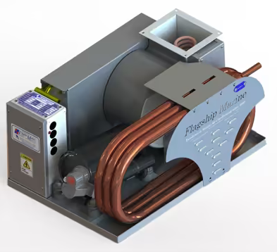Flagship FM18RLP – 18,000 BTU - 230V Self-Contained, Liquid-Cooled Marine AC Unit. Environmentally Friendly R410a refrigerant, rugged and dependable, NO PC Board. Specially built for the limited space. Only 11 inches tall. Easy to install and maintain. The FM18RLP is built in the USA and delivers dependable cooling year after year. Includes 4-wire battery-operated thermostat. Choose top or side discharge. 5-Year Warranty Parts, 1-Year Labor*