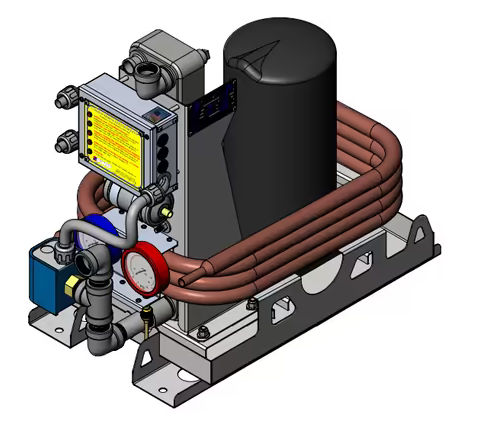 All Flagship Chillers have a low voltage control module with clearly labeled LEDs advising the end user specifically what has tripped the chiller, be it high or low refrigerant pressure, freeze control protection as well as low chilled water flow.