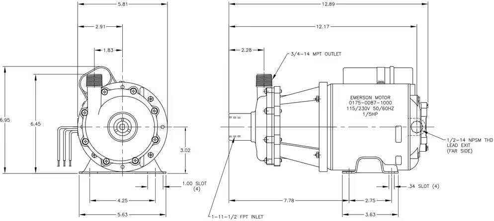 Pumps are 115/230V, 1 phase, air-cooled. Motors are Air Cooled and are U.L. listed as well as rated for continuous operation. Motors have a junction box for electrical connections. Explosion proof and special voltage motors are available upon special order.