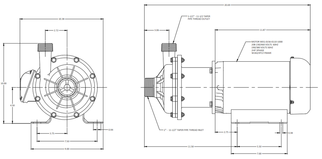 | Power | 0.375 HP | 0.279 Kw |