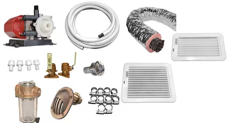 A/C Premium Installation Kit (Pump, Plastic Grills, Duct and Hardware) for Dometic ECD6K-HV, DTU6 and DTU8 Marine A/C Units.