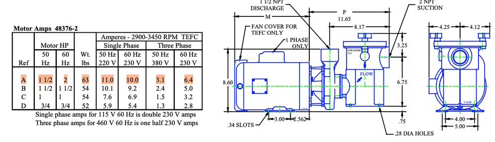 Technical Data NEMA 50/ 60 Hz JM Frames TEFC Motor is Standard NPT Connections Marine Bronze case, Impeller, and Adapter
