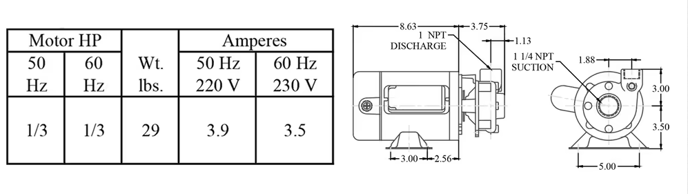 Technical Data NEMA 50/ 60 Hz JM Frames TEFC Motor is Standard NPT Connections Marine Bronze case, Impeller, and Adapter