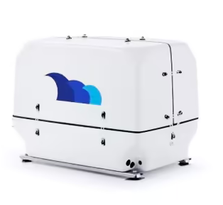 Quiet. Both the engine and the alternator of the Paguro 14000 generator are water cooled. This eliminates the need for airflow through the capsule to cool the generator, resulting in significantly lower noise output. Air for combustion passes through small holes in the base, which are designed and constructed to prevent sound escaping. The soundproof capsule is made from multilayered reinforced glass fiber with a sound absorbing material and then lined with high-density sound absorbing foam to ensure maximum soundproofing.