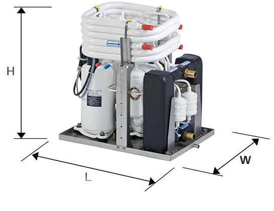 Chiller systems are suitable for boats with several cabins. Whenever three or more independent areas in a yacht need to be air-conditioned, a central chiller system is the right choice. The chiller unit is typically placed in the engine room, providing chilled water / glycol to all cabins via the chilled water circuit. One or several air handlers are fitted in each cabin providing the required cooling capacities to the rooms. The system offers one control for the unit itself as well as separate panels for each cabin.